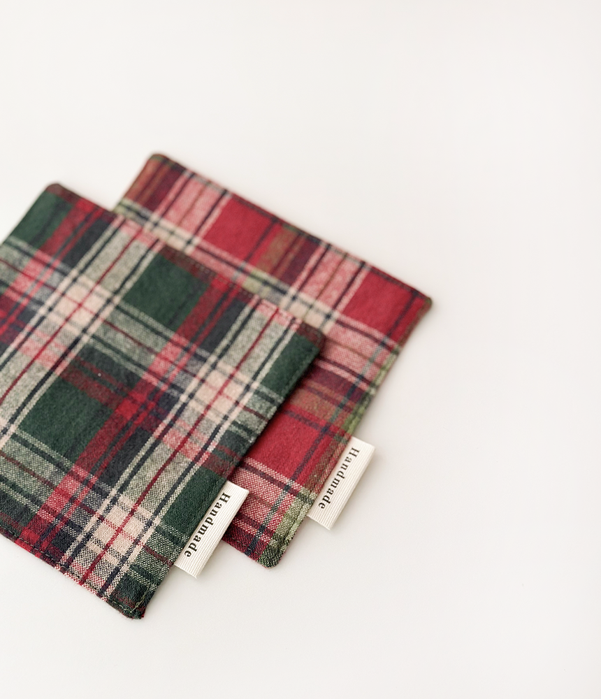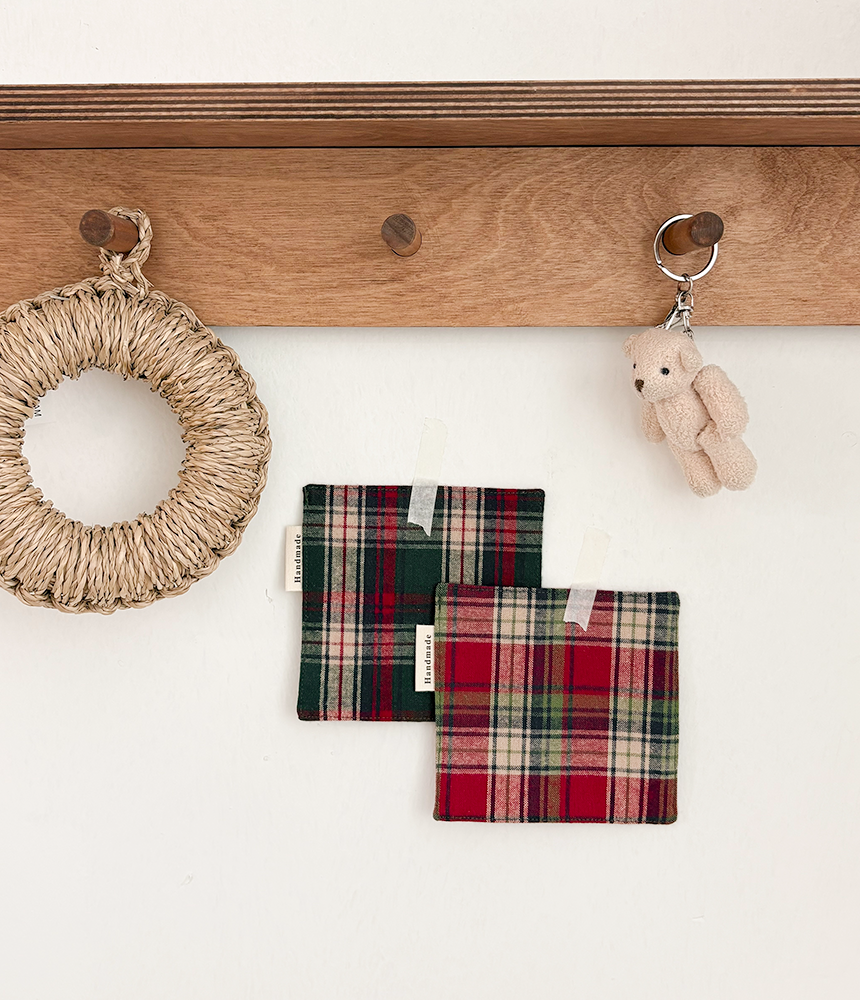 체크 티 코스터 (그린,레드)