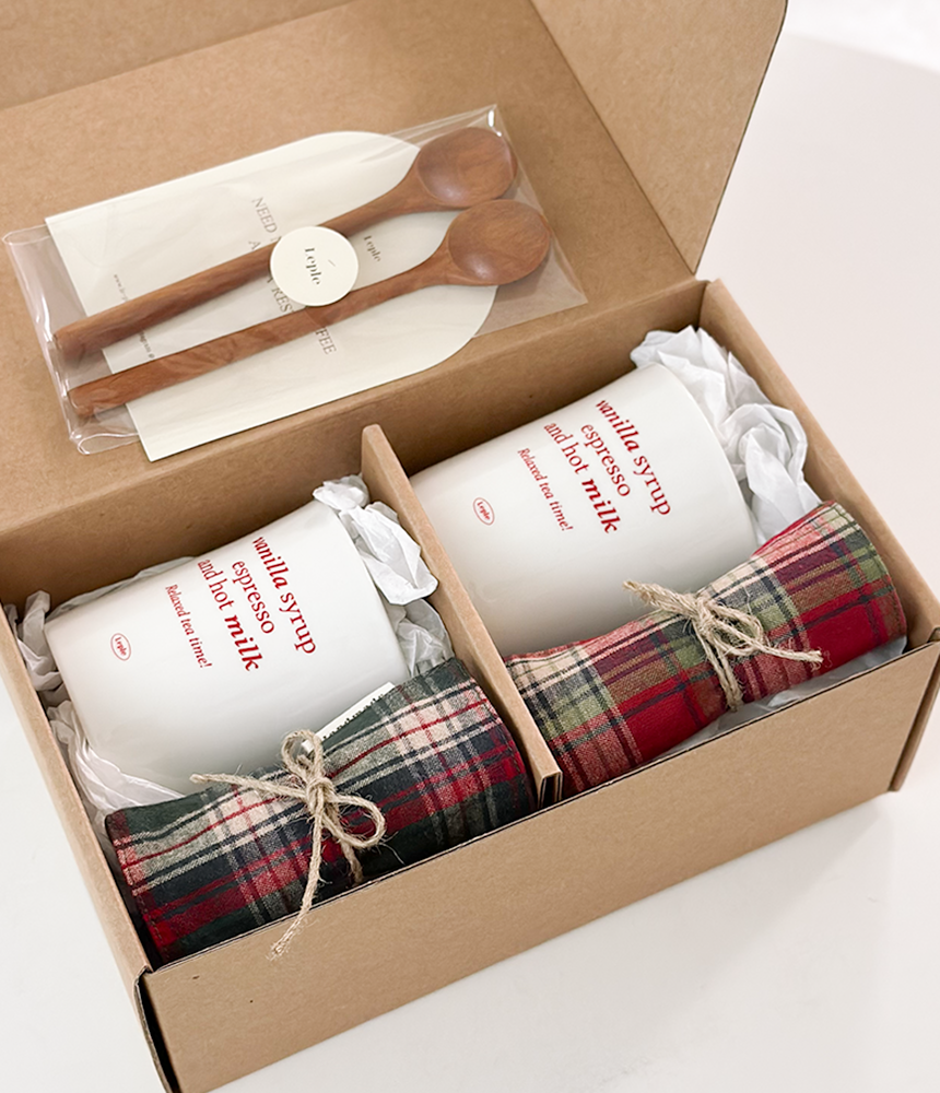 레터링 머그 2P + 체크 티 코스터 2P